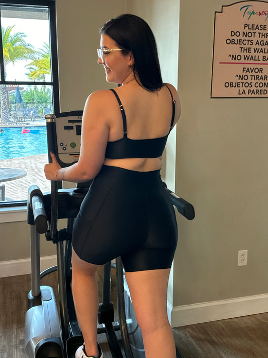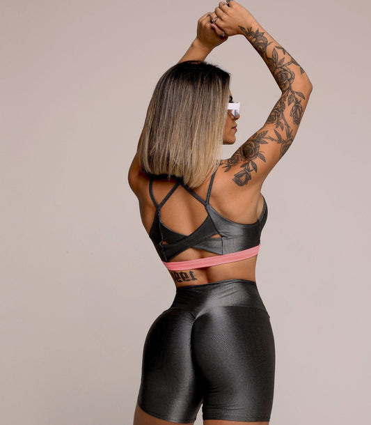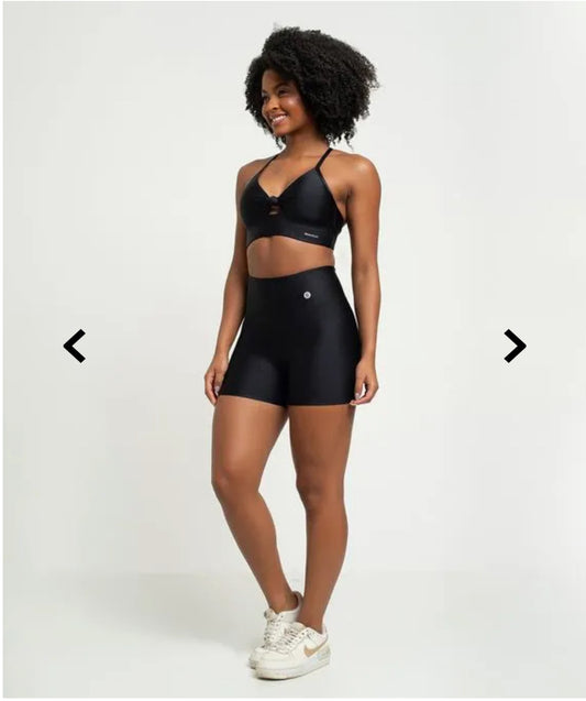 Conjunto com short e top franzido poliamida preto